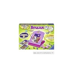 | Plus produit | ACTIVITE FANTASTIQUE Ce coffret complet de peinture par numéros permet aux enfants de réaliser 2 magnifiques tableaux grâce au chevalet réglable. Apportez un style tendance avec la peinture phosphorescente incluse et peignez de superbes chevaux ainsi qu\'un poulain à la tombée de la nuit. Dès 7 ans. FACILE, BEAU ET AMUSANT Tout le monde peut être un artiste avec la peinture par numéros, même les débutants ! Grâce aux lignes colorées pré-peintes et aux numéros associés à des couleurs, les enfants apprennent à peindre sans dépasser : résultat garanti ! CHEVALET REGLABLE Convient aux droitiers comme aux gauchers, le chevalet est réglable et son centre est rotatif pour faciliter la peinture sans bavure. Un rangement y est intégré. Compatible avec les formats Numéro d\'Art minis, petits et moyens. FAVORISE CONCENTRATION ET AUTONOMIE Loin des écrans, cette activité ludique allie dextérité et précision pour développer l\'habilité manuelle des enfants. Une fois finis, les tableaux deviennent une décoration idéale ou un cadeau unique pour ses proches. TOUT EST INCLUS : 1 chevalet, 1 gobelet, 1 palette de peinture, 1 tableau mini (8,5×12 cm) et petit format (13×18 cm), 13 pots de peinture acrylique refermables, de la peinture phosphorescente, 1 pinceau, 2 cadres, 8 pieds en mousse, 2 modèles et 1 notice. |