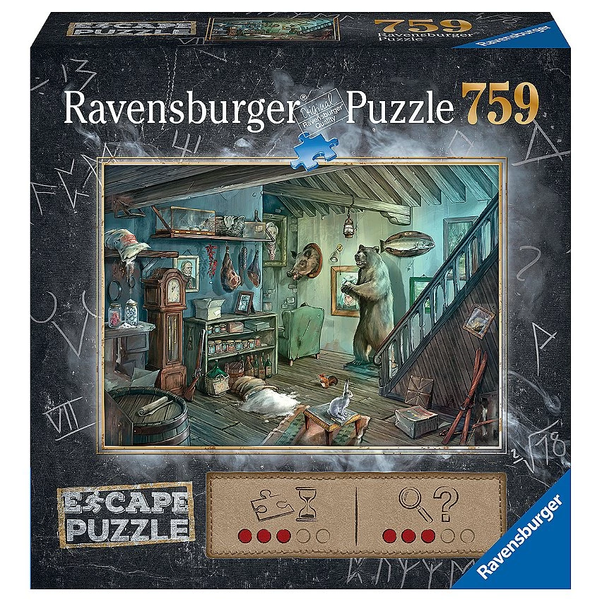 | Plus produit | Découvrez la première offre de puzzles inspirée des jeux d\'évasion et des Escape Rooms ! Un lointain parent décédé vous a choisi comme unique héritier, mais avant cela, il a souhaité vous mettre à l\'épreuve ! Vous voilà pris au piège d\'une cave lugubre remplie d\'objets terrifiants, et renfermant un coffre qui pourrait être la solution de ce parcours énigmatique. Saurez-vous trouver le moyen de l\'ouvrir ? Commencez par assembler les 759 pièces de ce puzzle, puis résolvez les différentes énigmes cachées au coeur de l\'illustration. Au fur et à mesure, vous récolterez des pièces qui vous permettront de reconstituer la solution finale, comme clef de sortie de ce grand jeu d\'évasion. Contenu : un puzzle de 759 pièces, un guide de jeu, une enveloppe contenant la solution finale.Bonus : des indices supplémentaires à retrouver en ligne pour vous aider Dimensions du puzzle : 70 x 50 cm |