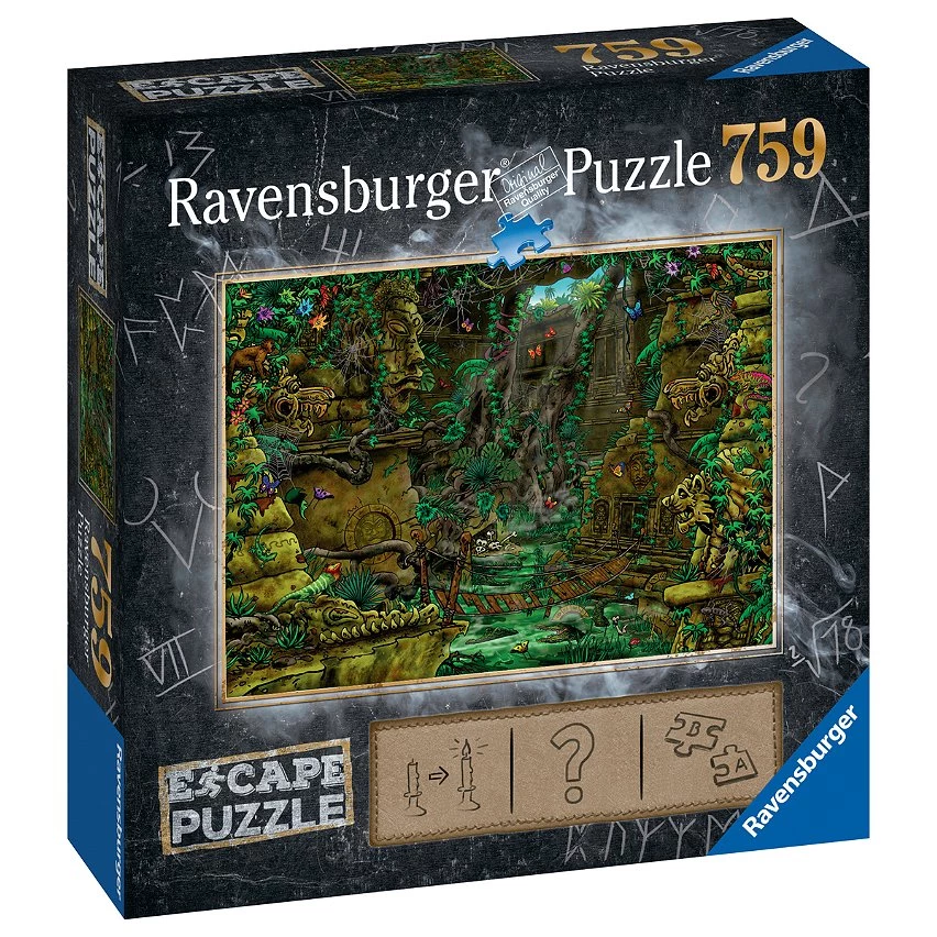 | Plus produit | Découvrez la première offre de puzzles inspirée des jeux d\'évasion et des Escape Rooms ! Alors que vous explorez ce célèbre temple en Asie, le sol se dérobe soudainement sous vos pieds et vous tombez au fond d\'un gouffre. Vous voilà pris au piège ! Saurez-vous trouver le moyen de vous échapper avant que les crocodiles ne fassent de vous leur repas ? Commencez par assembler les 759 pièces de ce puzzle, puis résolvez les différentes énigmes cachées au coeur de l\'illustration. Au fur et à mesure, vous récolterez des pièces qui vous permettront de reconstituer la solution finale, comme clef de sortie de ce grand jeu d\'évasion. Contenu : un puzzle de 759 pièces, un guide de jeu, une enveloppe contenant la solution finale.Bonus : des indices supplémentaires à retrouver en ligne pour vous aider Dimensions du puzzle : 70 x 50 cm |