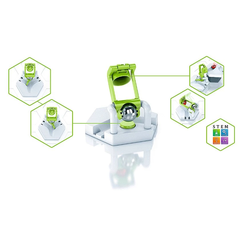 Aide ta bille à ralentir grâce à ce bloc innovant ! Le Dipper te permettra de diminuer la vitesse de ta bille, pour mieux franchir certains obstacles. Cet élément se joue avec au moins un Starter Set et peut ensuite se combiner avec tous les produits GraviTrax.