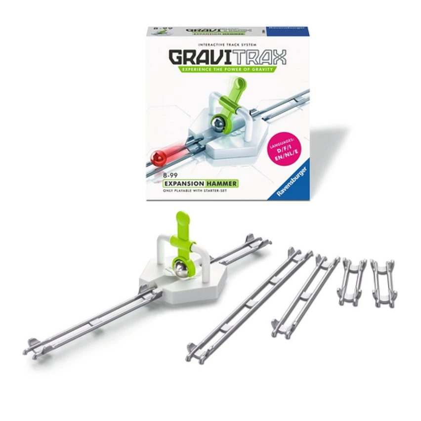 | Plus produit | MARTEAU : Un élément pour booster ses circuits de billes GraviTrax ! Quand une bille traverse le bloc, le marteau pivote sur son axe et frappe la bille à l\'arrière pour lui donner de l\'élan. Grâce à la vitesse gagnée, la bille pourra ensuite franchir de nouveaux obstacles et rouler plus longtemps. MODULABLE A L\'INFINI et COMPATIBLE avec tous les produits GraviTrax. Cet élément se joue avec au moins un Starter Set (indispensable pour démarrer) puis se combine avec toutes les gammes GraviTrax. Découvrez un large choix de sets d\'extension et d\'éléments pour enrichir vos circuits et imaginer un nombre illimité de parcours différents. CONTENU : 1 élément Marteau, 1 rail long, 2 rails moyens, 3 rails courts, 1 guide dutilisation illustré et en français UN CADEAU IDEAL pour les filles et les garçons à partir de 8 ans, et pour les fans de construction de tous âges ! Fabriqués en Europe avec des matériaux de grande qualité, GraviTrax est fait pour durer et garantit des heures de jeu et d\'assemblage, seul ou à plusieurs. Une idée cadeau parfaite pour un anniversaire ou pour Noël. JEU EDUCATIF STEM : GraviTrax est un système de construction très ludique qui permet aux enfants d\'expérimenter des lois physiques comme la gravité, le magnétisme ou la force cinétique. En manipulant les blocs et en testant leurs propres assemblages, ils développent à la fois leur créativité et leur compréhension de ces principes scientifiques. |