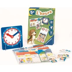 | La boîte contient | 3 planches, 30 cartes-puzzles, 1 horloge avec aiguilles et trépied, 1 notice |