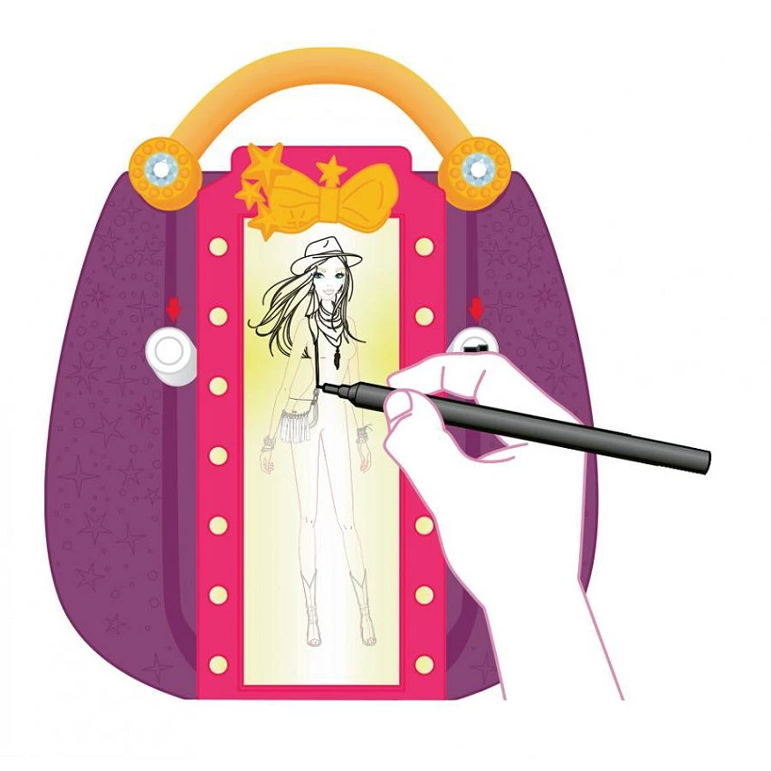 Crée tes collections de mode ultra-tendance ! Choisis une tenue et place-la sur la table lumineuse. Pose la silhouette mannequin par-dessus. Ensuite décalque les contours qui tintéressent. Tu peux également ajouter des motifs et des accessoires daprès les modèles ou en inventer dautres. La LED mobile te permet de mieux voir les détails des tenues, des accessoires et des motifs, et de les reproduire. A la fin, donne de la couleur à ta création. Tu peux taider de tes nuanciers de couleur. Ce studio est muni dune poignée pour faciliter le transport et comporte un rangement à larrière pour tout ranger. Nécessite 3 piles LR03, non fournies. Ce produit est composé de matériaux issus de forêts bien gérées certifiées FSC®, de matériaux recyclés et de matériaux issus dautres sources contrôlées (FSC-C111262). A partir de 6 ans.