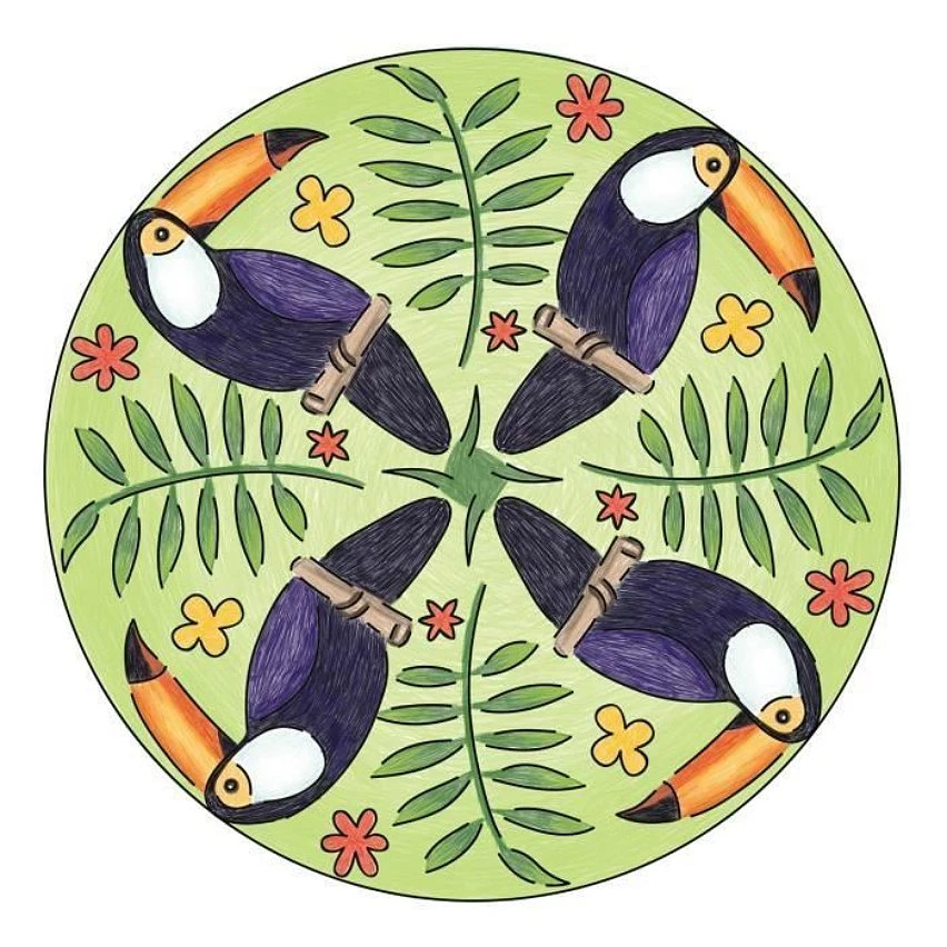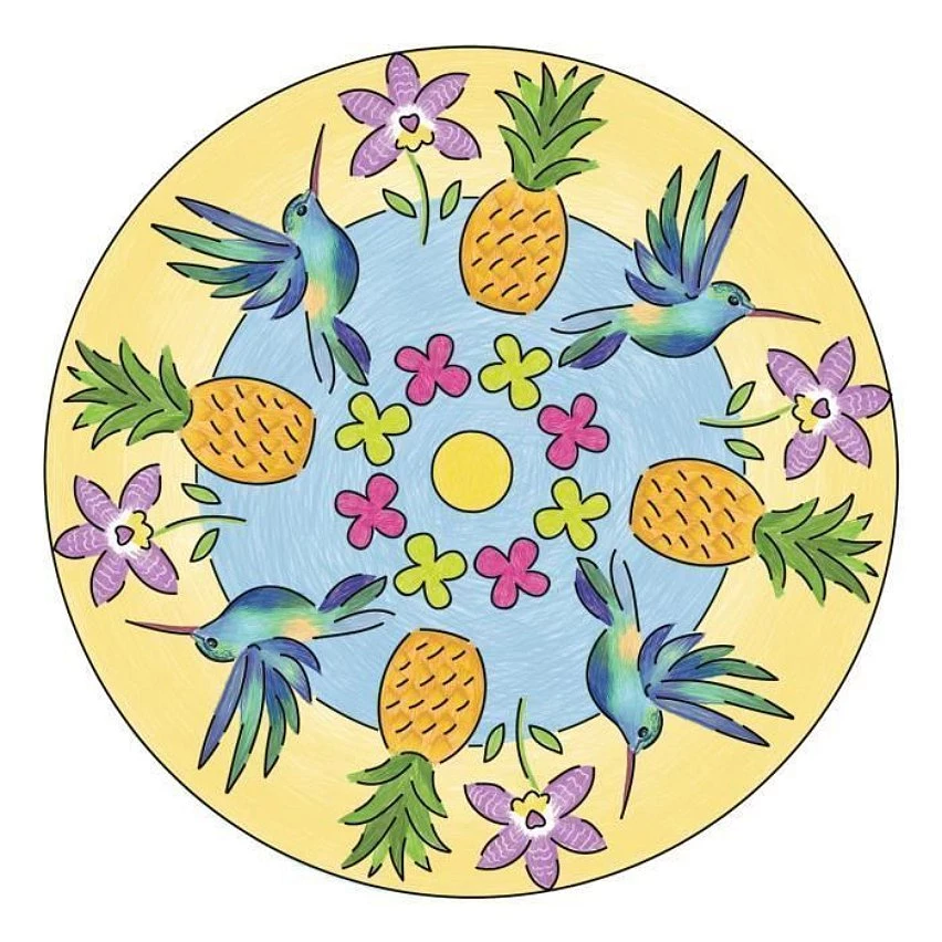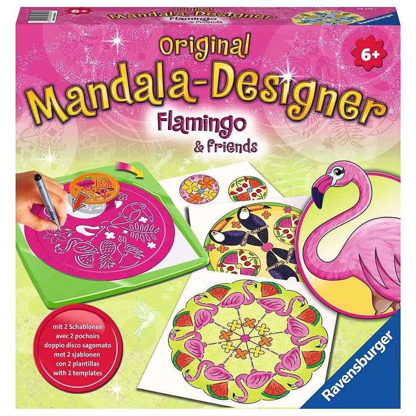 « Le mandala consiste à réaliser un dessin à l'aide d'un pochoir rond mobile qui tourne afin de reproduire sur une feuille de papier des motifs que l'on peut répéter et combiner à l'infini. Pour finaliser son mandala, il suffit de le colorier. Mandala Designer, c'est toute une collection de Mandala. Chaque produit inclut un cadre dans lequel glisser la feuille (21 x 21 cm), 2 pochoirs (1 grand et 1 petit), 1 feutre, 3 crayons de couleur et des feuilles blanches. Cette référence Flamingo & friends permet de reproduire des flamants roses, des toucans, des ananas, des fleurs, … tout un univers de dessins tropicaux ! Ce produit est composé de matériaux issus de forêts bien gérées certifiées FSC®, de matériaux recyclés et de matériaux issus dautres sources contrôlées (FSC-C111262). A partir de 6 ans. »