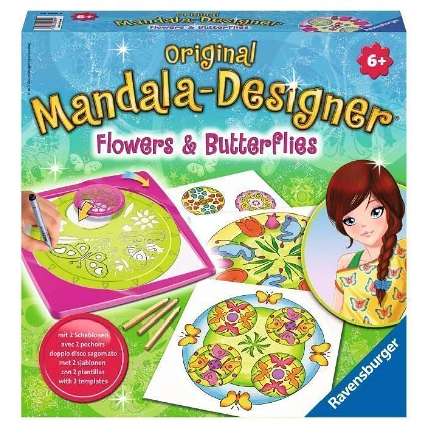 Le mandala consiste à réaliser un dessin à l'aide d'un pochoir rond mobile qui tourne afin de reproduire sur une feuille de papier des motifs que l'on peut répéter et combiner à l'infini. Pour finaliser son mandala, il suffit de le colorier. Mandala Designer, c'est toute une collection de Mandala. Chaque produit inclut un cadre dans lequel glisser la feuille (21 x 21 cm), 2 pochoirs (1 grand et 1 petit), 1 feutre, 3 crayons de couleur et des feuilles blanches. Cette référence permet de reproduire et combiner à volonté des fleurs et des papillons. A partir de 6 ans. Ce produit est composé de matériaux issus de forêts bien gérées certifiées FSC®, de matériaux recyclés et de matériaux issus dautres sources contrôlées (FSC-C111262).