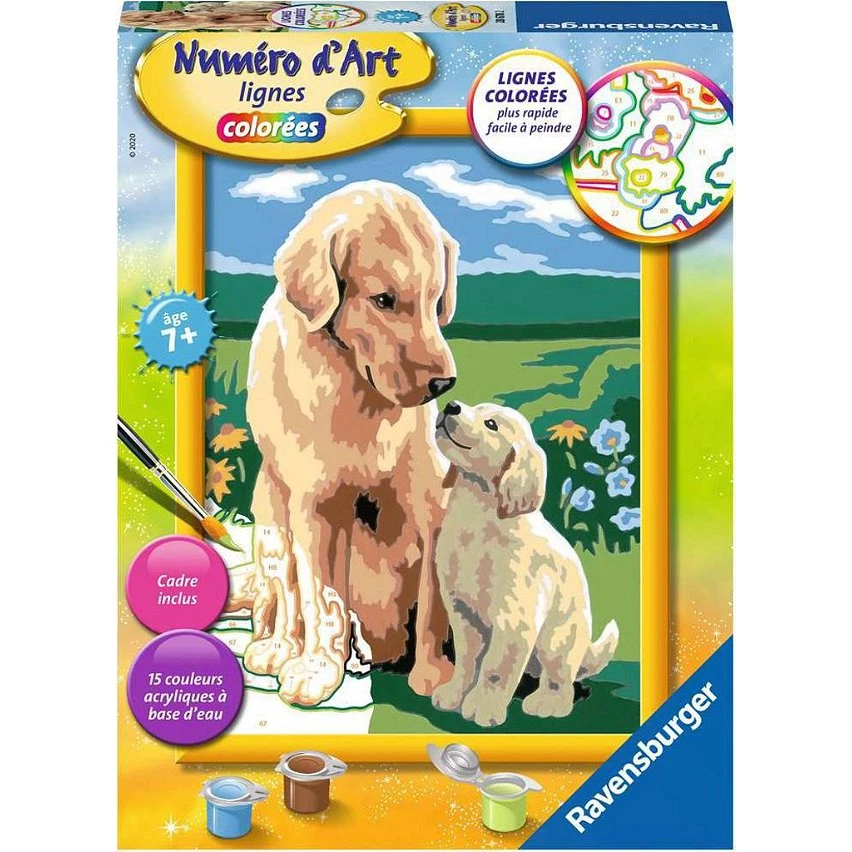 C'est facile, beau et amusant de peindre par numéro grâce aux lignes colorées pré-peintes ! Parmi les 18 visuels moyens formats à peindre et à accrocher, ce chien labrador et son chiot sauront ravir les enfants et compléter leurs collections. A partir de 7 ans. Ce produit est composé de matériaux issus de forêts bien gérées certifiées FSC®, de matériaux recyclés et de matériaux issus dautres sources contrôlées (FSC-C111262).