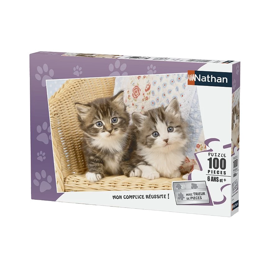 | Plus produit | Un puzzle de 100 pièces, avec un trieur de pièces à 3 compartiments, idéalement conçu pour les enfants dès 6 ans. Une activité calme, ludique et éducative avec sur le thème des chats Le nombre et la taille des pièces sont spécialement adaptés à l\'âge de l\'enfant. Il développe ainsi sa motricité fine, son sens de l\'observation et sa capacité de concentration, tout en s\'amusant dans l\'univers de ses héros préférés ! Dimensions du puzzle : Champ Liste donnée articles Fabriqué en Europe, ce puzzle est composé de matériaux issus de forêts bien gérées certifiées FSC®, de matériaux recyclés et de matériaux issus dautres sources contrôlées (FSC-C111262). |