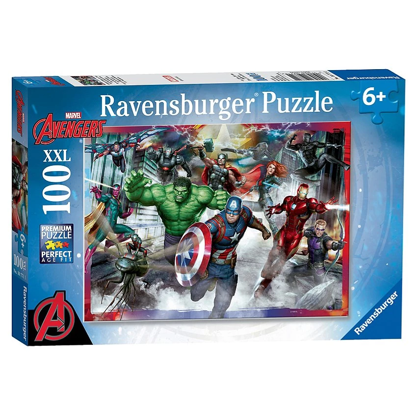 | Plus produit | Un puzzle de 100 pièces, idéalement conçu pour les enfants dès 6 ans Une activité calme, ludique et éducative avec tous les héros des Avengers Le nombre et la taille des pièces sont spécialement adaptés à l\'âge de l\'enfant. Il développe ainsi sa motricité fine, son sens de l\'observation et sa capacité de concentration, tout en s\'amusant dans l\'univers de ses héros préférés ! Dimensions du puzzle : 49 x 36 cm Fabriqué en Europe, ce puzzle est composé de matériaux issus de forêts bien gérées certifiées FSC®, de matériaux recyclés et de matériaux issus dautres sources contrôlées (FSC-C111262). |