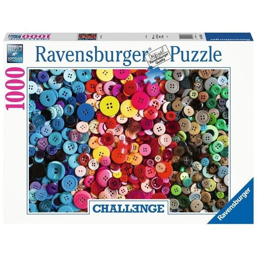 Jeux Ravensburger-Ravensburger-Pz Challenge Bouton 1000p-Pour les puzzleurs entraînés, le format 1000 pieces est idéal pour profiter de cette activité, propice a la détente.-Mixte-A partir de 14 ans-Livré a l’unité