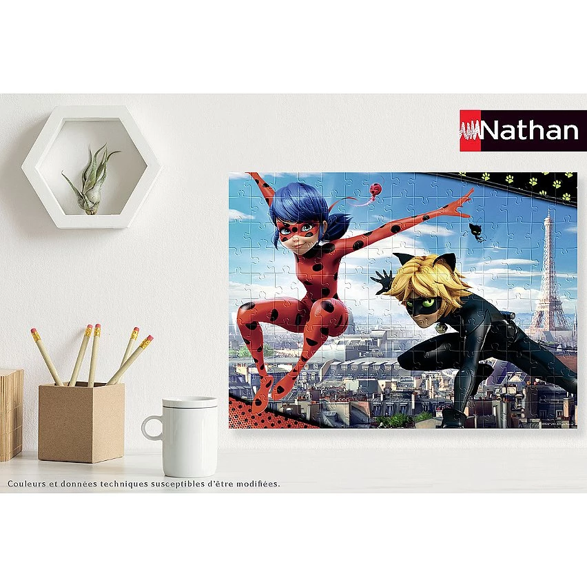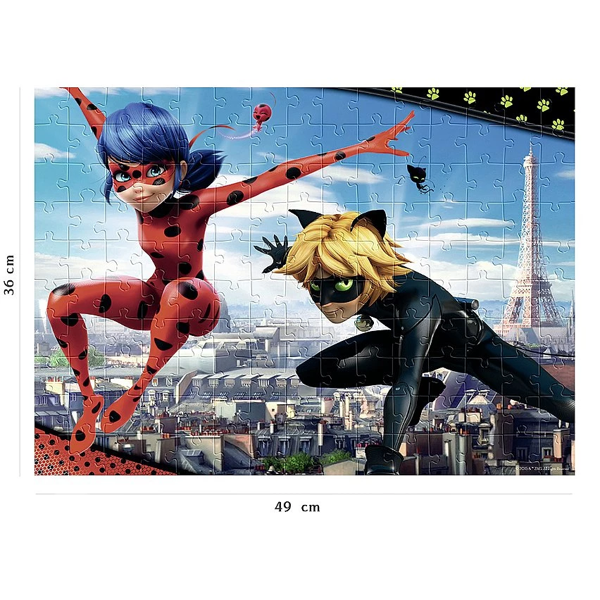 | Plus produit | Un puzzle de 150 pièces, avec un trieur de pièces à 3 compartiments, idéalement conçu pour les enfants dès 7 ans. Une activité calme, ludique et éducative dans l\'univers de Miraculous Le nombre et la taille des pièces sont spécialement adaptés à l\'âge de l\'enfant. Il développe ainsi sa motricité fine, son sens de l\'observation et sa capacité de concentration, tout en s\'amusant dans l\'univers de ses héros préférés ! Dimensions du puzzle : 49 x 36 cm Fabriqué en Europe, ce puzzle est composé de matériaux issus de forêts bien gérées certifiées FSC®, de matériaux recyclés et de matériaux issus dautres sources contrôlées (FSC-C111262). |