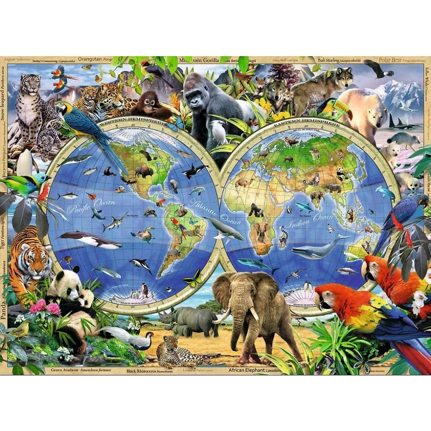 Ce coffret contient un puzzle de 300 pièces. Le nombre et la taille des pièces sont conçus pour permettre aux enfants dès 9 ans d’assembler leurs puzzles, Une façon ludique d’apprendre la géographie et les animaux.