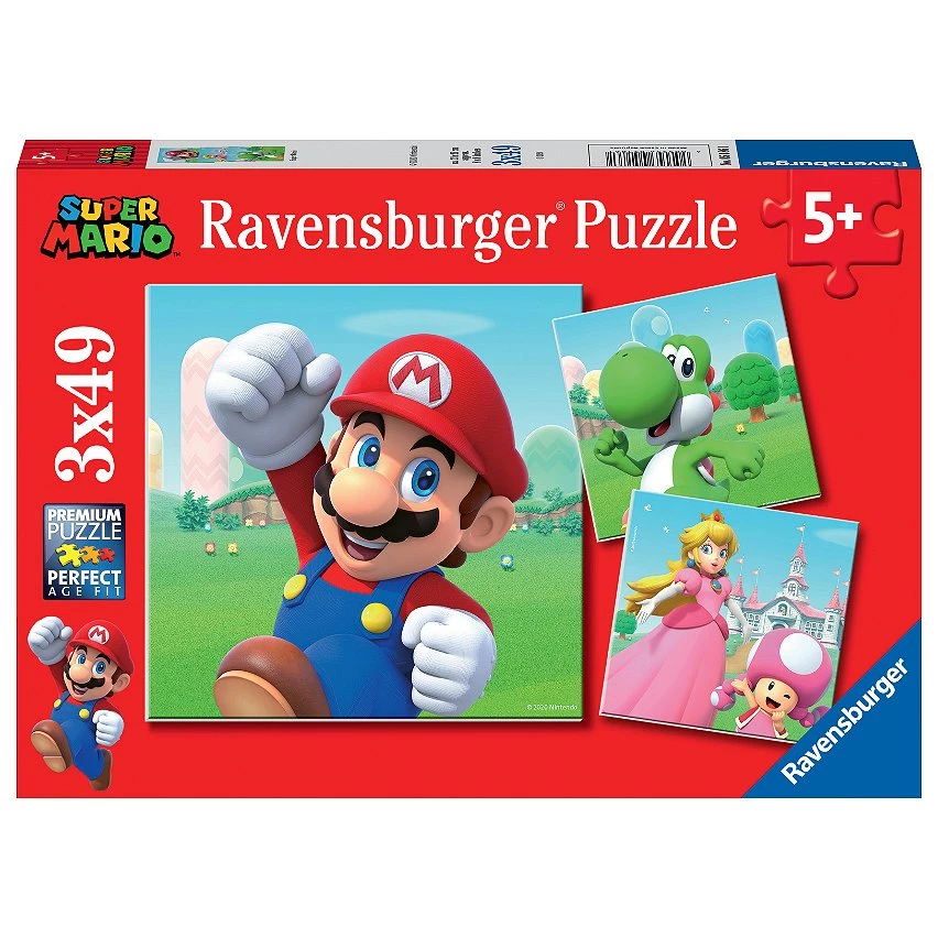 | Plus produit | 3 puzzles de 49 pièces chacun, ainsi que leurs posters à taille réelle, idéalement conçus pour les enfants dès 5 ans Une activité calme, ludique et éducative avec tous les personnages de Super Mario Le nombre et la taille des pièces sont spécialement adaptés à l\'âge de l\'enfant. Il développe ainsi sa motricité fine, son sens de l\'observation et sa capacité de concentration, tout en s\'amusant dans l\'univers de ses héros préférés ! Dimensions de chaque puzzle : 21 x 21 cm Fabriqué en Europe, ce puzzle est composé de matériaux issus de forêts bien gérées certifiées FSC®, de matériaux recyclés et de matériaux issus dautres sources contrôlées (FSC-C111262). |