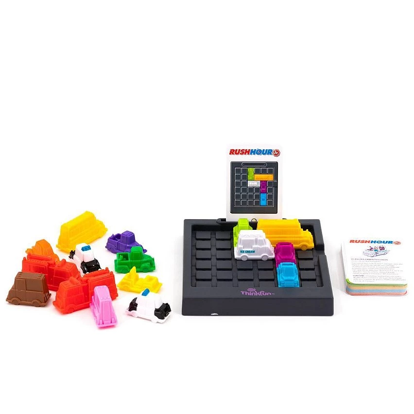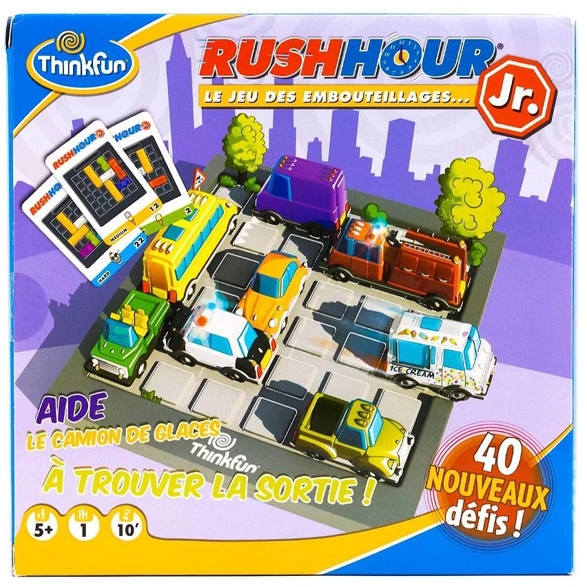 Au secours ! Le camion de glaces est coincé dans les embouteillages ! Comme dans la version classique du Rush Hour®, le célèbre jeu des embouteillages, fais glisser les voitures et les camions hors de ton chemin pour dégager la voie vers la sortie au camion de glaces. Rush Hour® Junior est le jeu de logique idéal pour tous les enfants, petits et grands, même un adulte y trouvera un défi à sa mesure. Pour commencer : choisis une carte Défi et place les voitures et les camions sur la grille comme indiqué sur la carte. Ton but : emmenez le camion de glaces jusqu'à la sortie. Fais glisser les voitures et les camions pour dégager la route jusqu'à ce que la voie soit libre. 40 nouvelles cartes défis avec quatre niveaux de difficulté, spécialement conçues pour des enfants à partir de 5 ans. Ce casse-tête à difficulté progressive est un moyen amusant d'entraîner ses capacités de déduction.