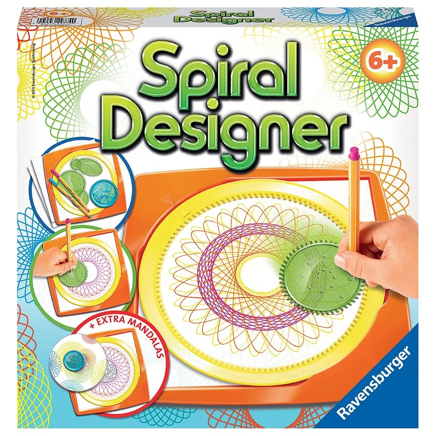| Plus produit | DESSINER EN SPIRAL Avec Spiral Designer, dessine de belles spirales géométriques pleines de couleurs grâce aux 2 feutres de couleur inclus. Idéal pour découvrir l\'activité dessin, dès 6 ans. PRATIQUE ET FACILE A UTILISER Il suffit d\'insérer une feuille de papier, de choisir une des roues crantées et de tourner les roues avec le feutre de couleur pour un résultat garanti. COMBINAISONS DE DESSIN INFINIES Les roues crantées sont spécialement adaptées au pochoir. C\'est facile de changer les roues crantées, la couleur du feutre pour créer une infinité de combinaisons possibles. FAVORISE CONCENTRATION ET APPRENTISSAGE Loin des écrans, cette activité créative allie dextérité et précision pour développer l\'habilité manuelle et la concentration des enfants. TOUT EST INCLUS : 1 pupitre, 1 anneau cranté, 4 roues crantées, 10 feuilles de papier (21 x 21 cm), 2 stylos-feutres, 1 pochoir mandala et 1 notice |