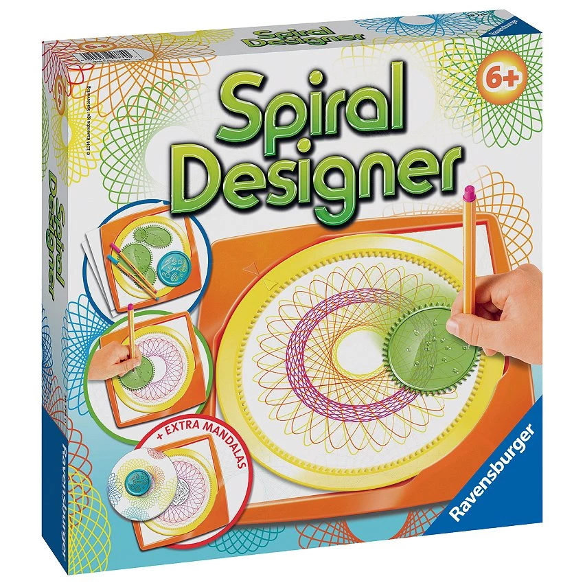 Avec Spiral Designer, dessine de superbes spirales géométriques. Il suffit d'insérer une feuille de papier, de choisir une des roues crantées et de tourner pour créer une infinité de motifs. C'est super facile grâce aux roues dentelées spécialement adaptées aux engrenages du cercle. En changeant les roues, ou les feutres, ou l'emplacement de ceux-ci sur la roue, les combinaisons sont infinies ! Résultat garanti. Version classique : avec 1 pochoir mandala en plus. A partir de 6 ans. Ce produit est composé de matériaux issus de forêts bien gérées certifiées FSC®, de matériaux recyclés et de matériaux issus dautres sources contrôlées (FSC-C111262).