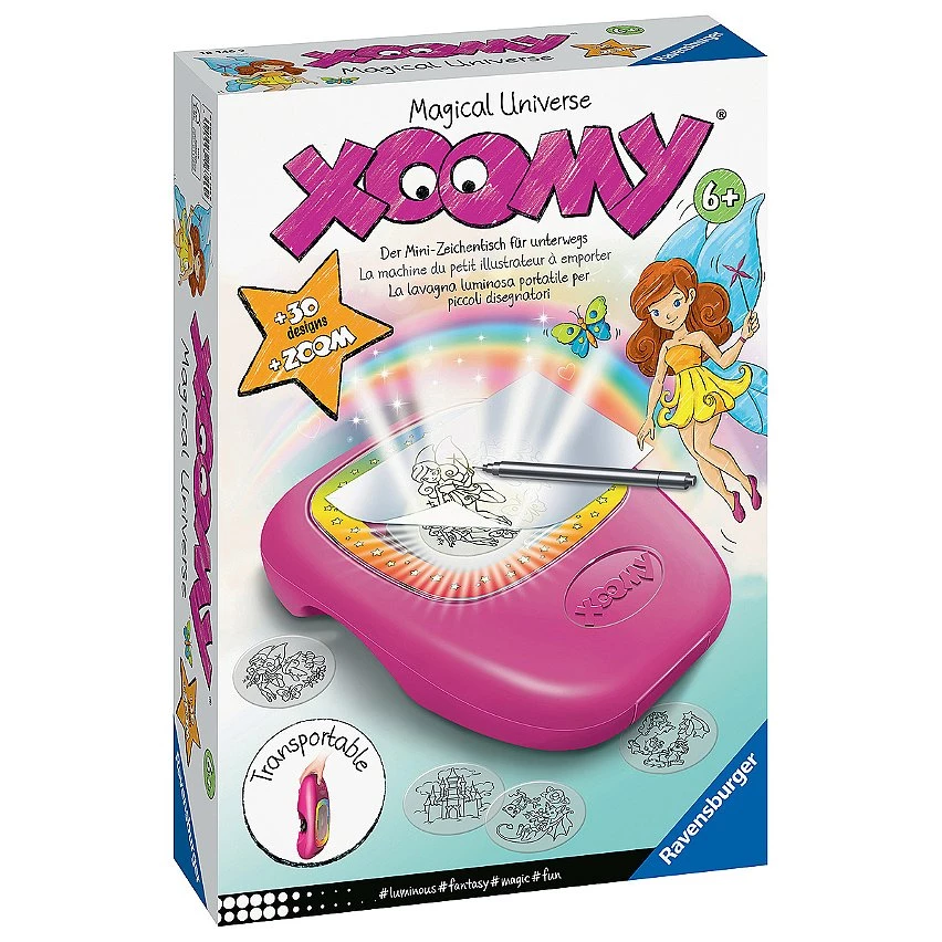 Une machine à dessin transportable dotée d'un zoom. Les illustrateurs en herbe peuvent dessiner des fées, des licornes ou des princesses grâce à la projection du zoom sur la surface de dessin de 10.5 x 21 cm. Pour faciliter le transport, tout le matériel se range à l'intérieur de la machine. Dès 6 ans. Nécessite 3 piles LR03 non fournies. Ce produit est composé de matériaux issus de forêts bien gérées certifiées FSC®, de matériaux recyclés et de matériaux issus dautres sources contrôlées (FSC-C111262).